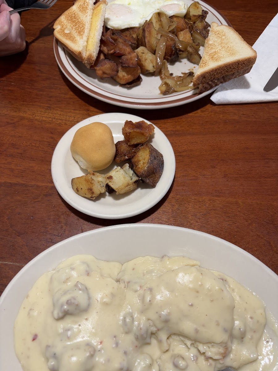 The breakfast menu is a standout, featuring favorites like fluffy pancakes, crispy bacon, and eggs cooked to perfection. One of the most popular dishes is their “Country Breakfast,” which includes scrambled eggs, sausage, fried potatoes, and a biscuit or toast. The portions are generous, and the flavors are just like something you'd expect from a home-cooked meal.